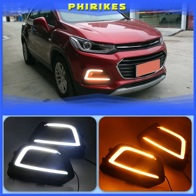 Автомобильные дневные ходовые огни 1 пара DRL Для Chevrolet Trax 2017 2018, дневные ходовые огни, противотуманные фары, дневной свет с желтым указателем поворота