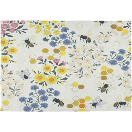 Bestwell Placemats 1 pack Wildflowers Heat-Resistant Non-Slip Double Sided Washable Kitchen Dining Table Mats for Kitchen Table Decoration 12 x 18 Inch