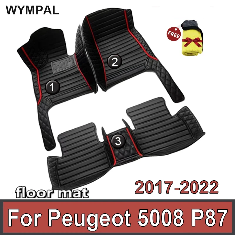 Автомобильные коврики для Peugeot 5008 P87 2017 ~ 2022, автомобильные роскошные кожаные коврики, прочные коврики, коврики, детали интерьера, автомобильные аксессуары