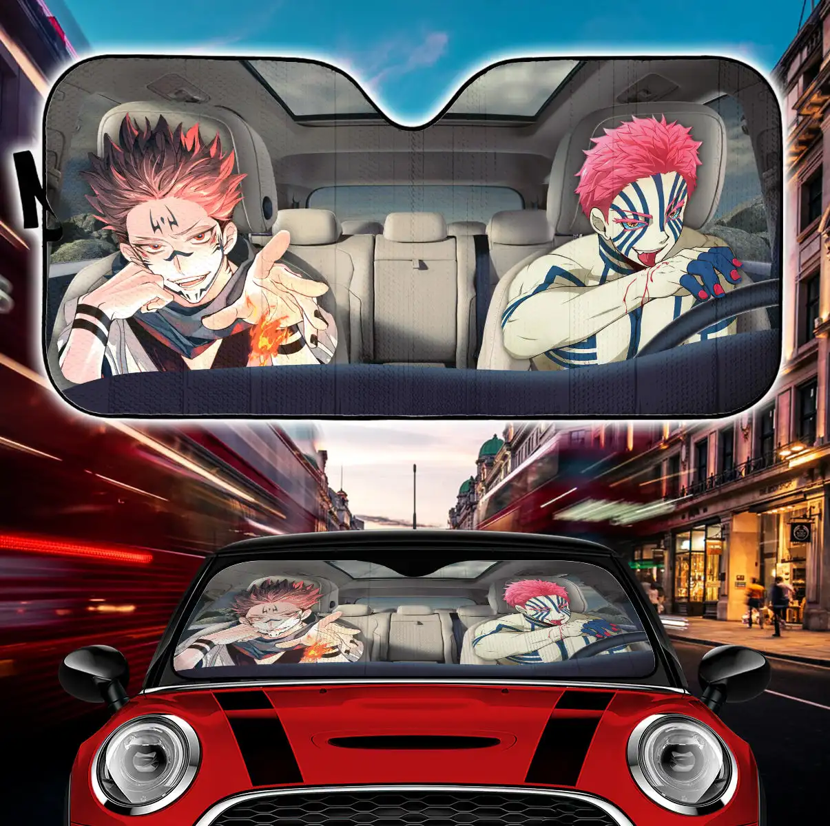 Автомобильные солнцезащитные очки Akaza и Sukuna, аниме-Рассекатель Демонов и джутсу кайсен, автомобильные солнцезащитные очки на лобовое стекло