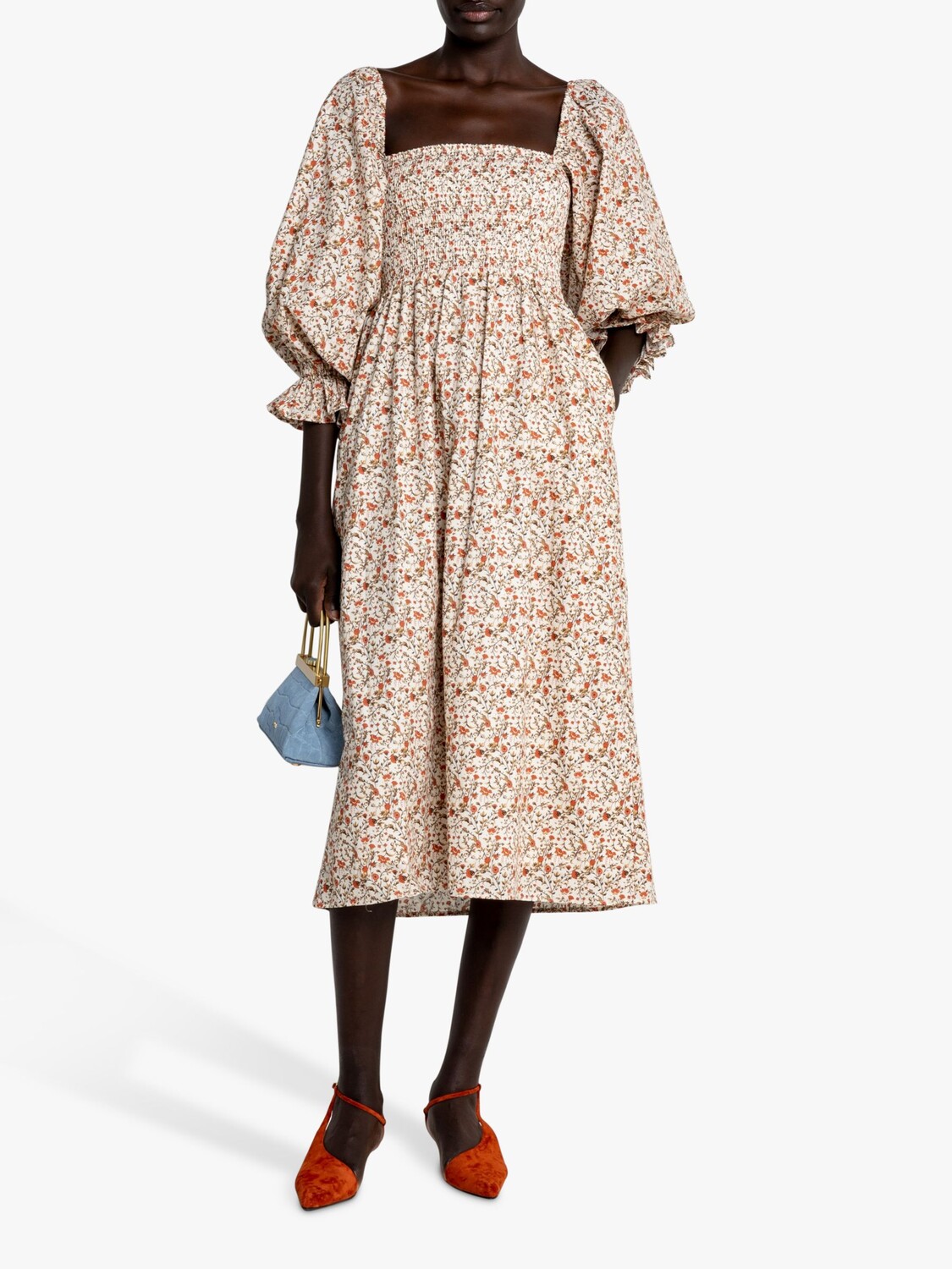 casual dresses capucines frill trim ruched swiss dot chiffon dress women spring summer v neck 3/4 lantern sleeve elastic waist midi dresses2, Black;gray