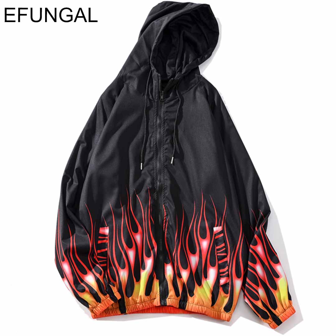 Flame Print Casual Windbreaker Jackets Coats Men 2019 Autumn Winter Hip Hop Jacket Zipper Outwear Harajuku Streetwear, Blue