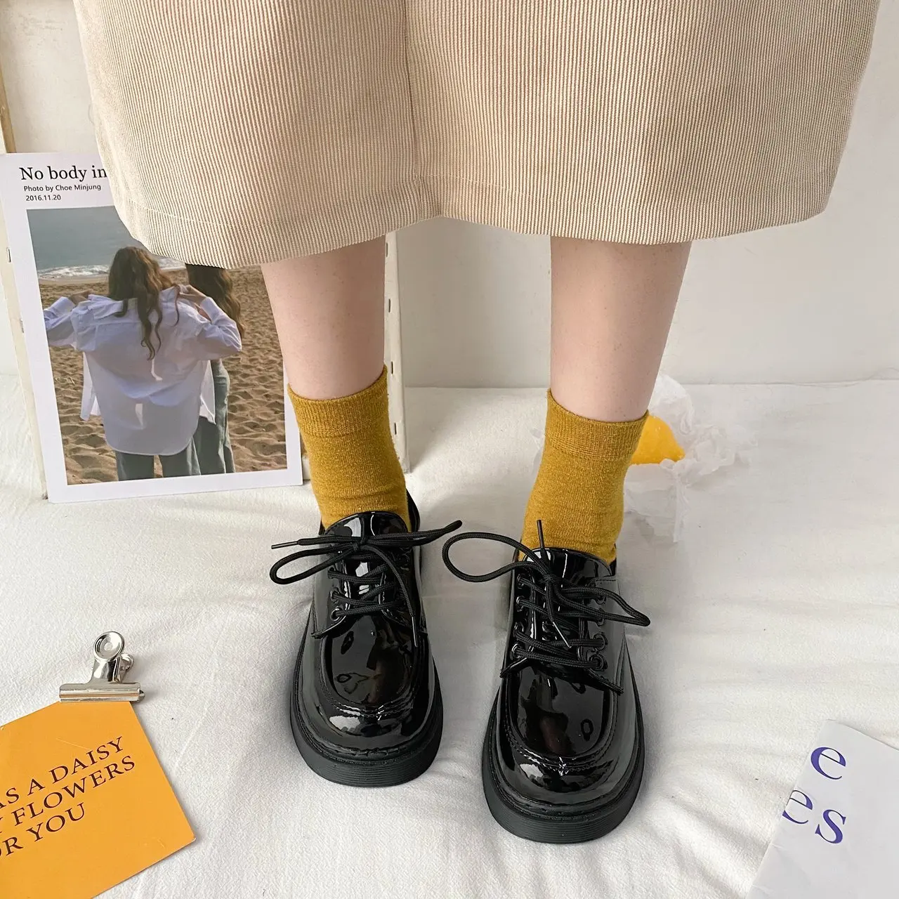 Shoes Woman 2021 Female Footwear Black Flats Autumn Clogs Platform Square Toe Oxfords Casual Sneaker British Style New Cross Ret