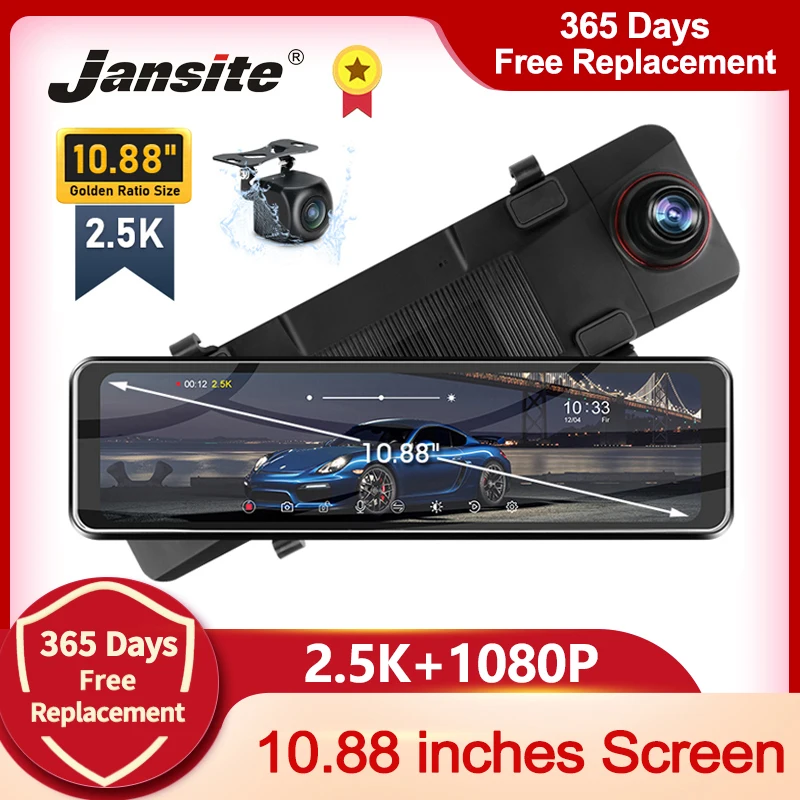 Автомобильный видеорегистратор Jansite, 10,88 дюйма, 2,5 K, сенсорный экран, фронтальная камера, замедленная съемка видео, GPS-трек, воспроизведение, ...