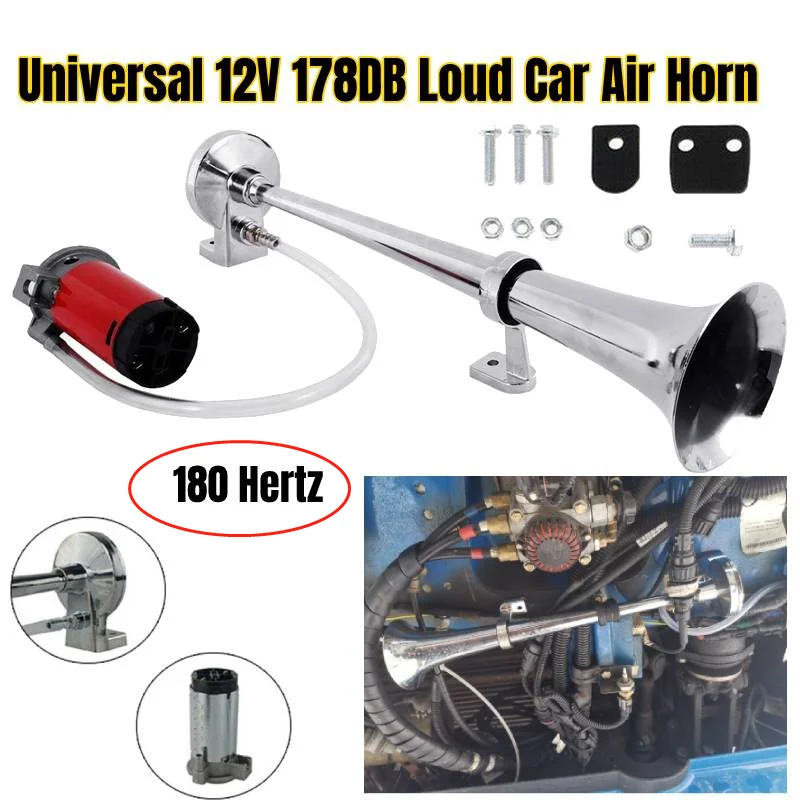 Автомобильный воздушный гудок 12 В, супер громкий, 178дб, 180 герц, компрессор с одной трубой сирена в металлическом корпусе универсальный для ...
