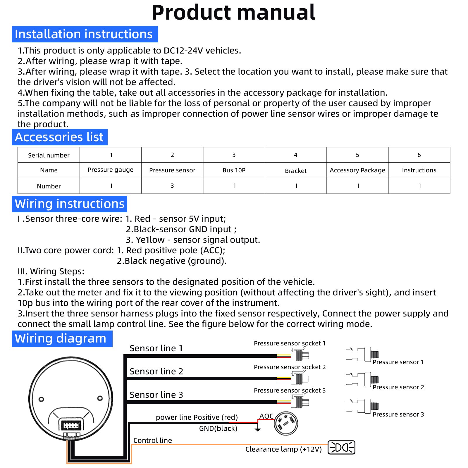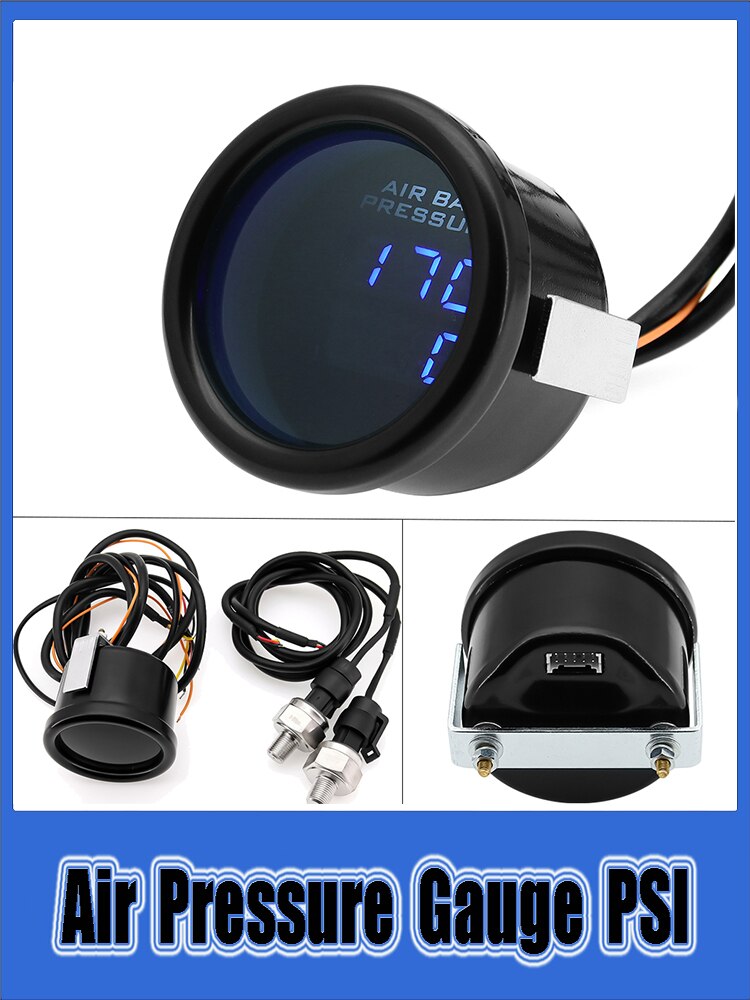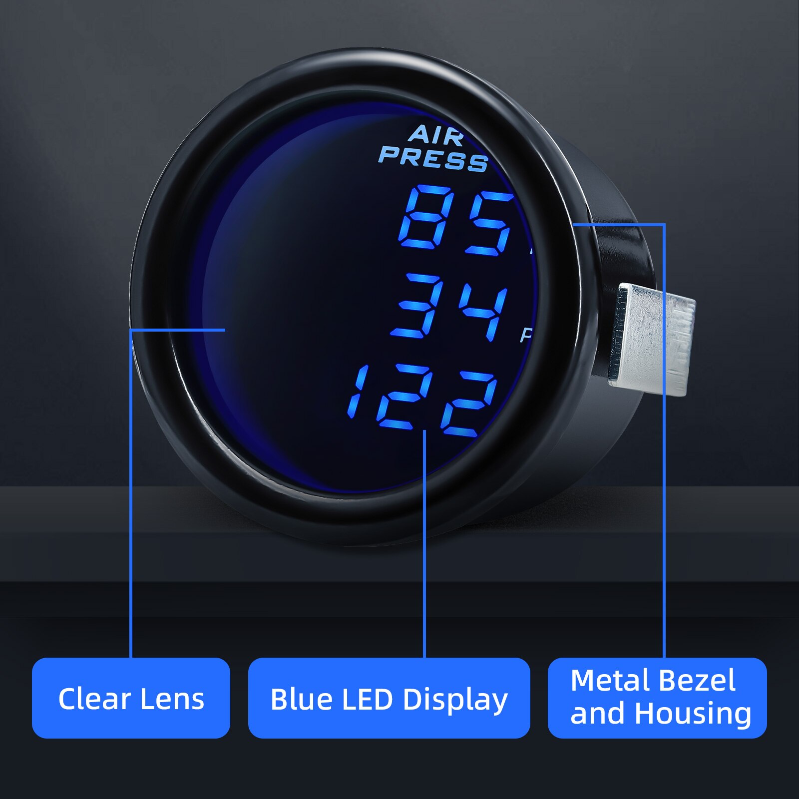 Автомобильный датчик давления воздуха, 52 мм, синий цвет, цифровой дисплей, 3 датчика 1/8NPT
