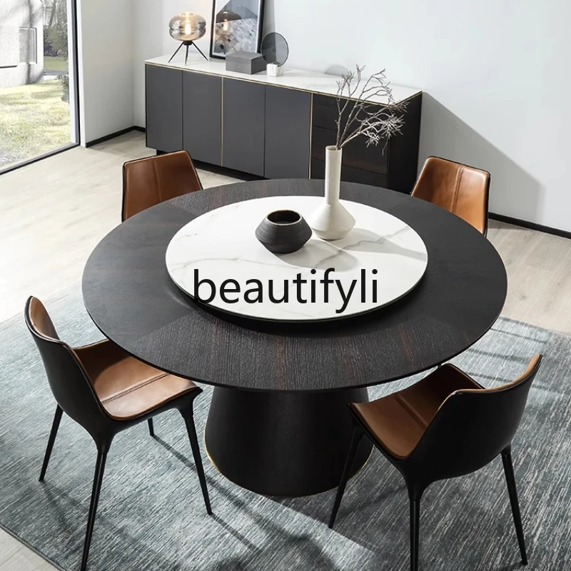 Italian Minimalist Solid Wood Round Dining Table Modern Simple Industrial Style Home Round Table Dining Table and Chairs