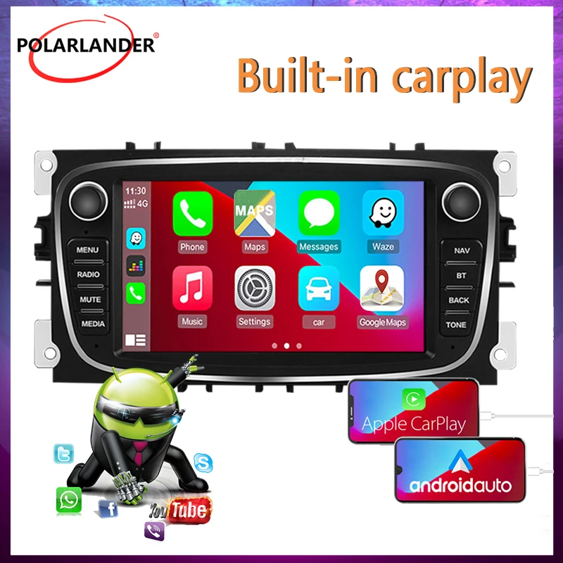 Автомобильный мультимедийный плеер 1 + 16G, автомагнитола 2 Din со встроенным Carplay, Android, Wi-Fi, 7 "GPS, для Ford/Focus/S-Max/Mondeo 9/GalaxyC-Max
