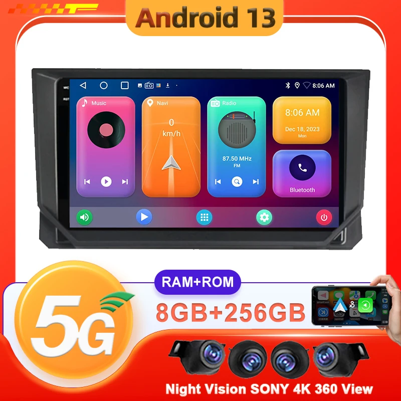 Автомобильный радиоприемник на Android 13 для Seat Ibiza 2017-2020, автомобильный мультимедийный плеер с GPS-навигацией, 2din DVD, высокопроизводительный экран с процессором BT