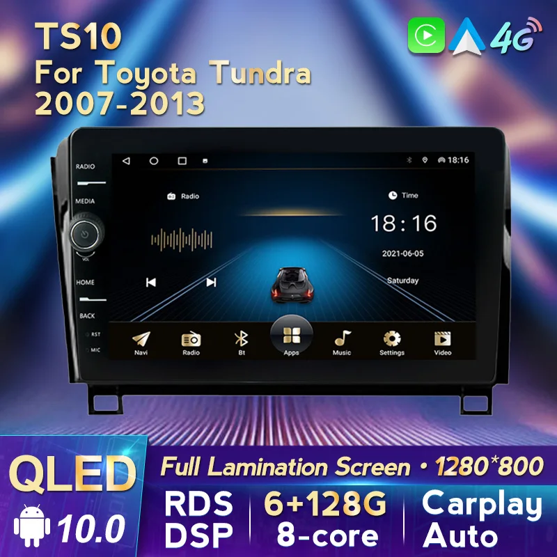 Автомобильный радиоприемник, стерео для Toyota Tundra XK50 2007-2013, мультимедиа, GPS-навигация, 8-ядерный процессор, Android 10, QLED экран CARPLAY + AUTO 4G RDS DSP