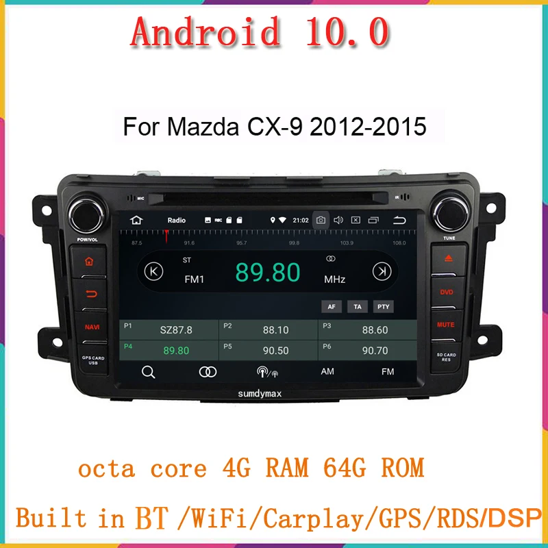 Автомобильный радиоприемник 2DIN Android 10 для Mazda CX-9 2008-2014, автомобильный DVD GPS-навигатор, мультимедийный плеер, аудио, стерео, Carplay, DSP, Wi-Fi