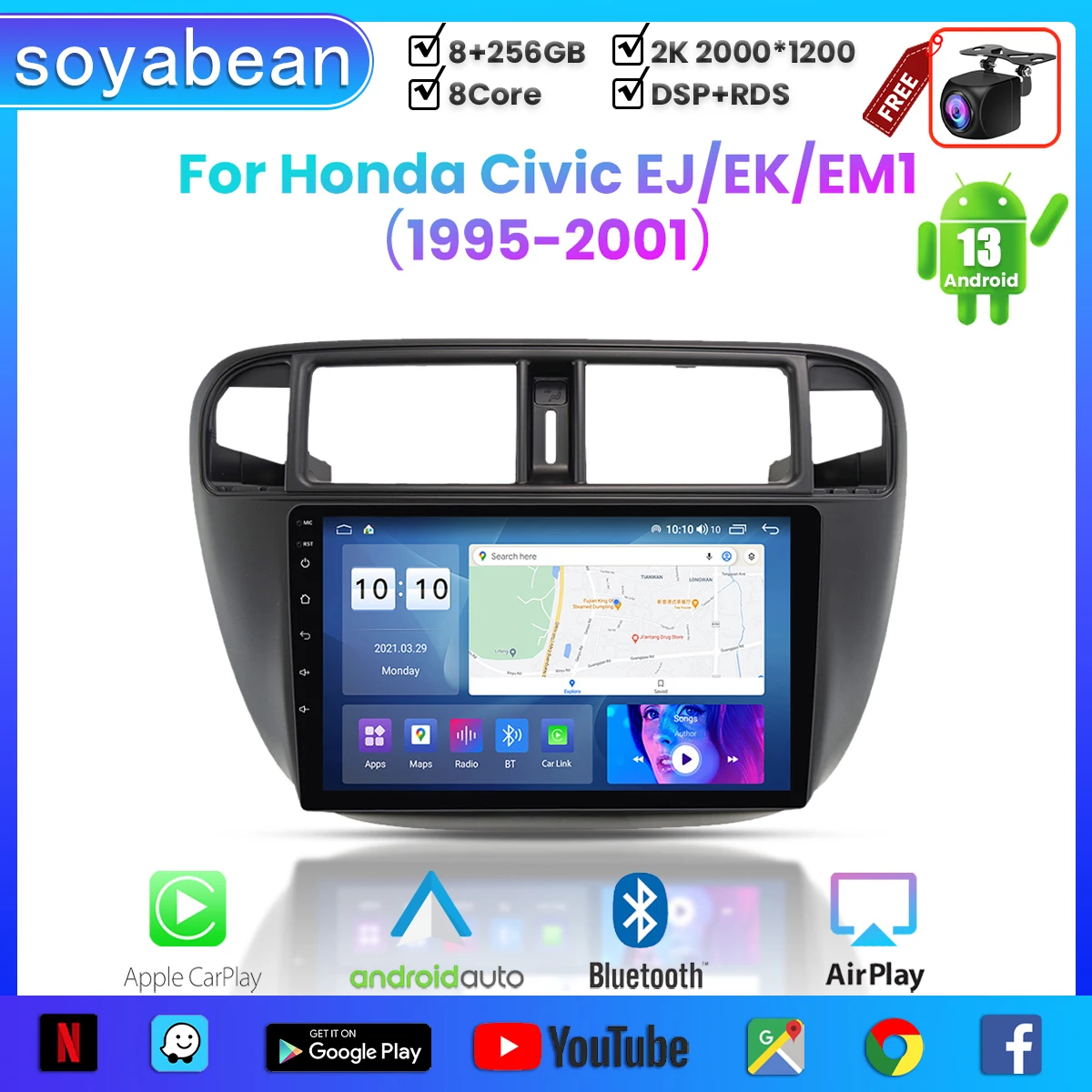 Автомобильный радиоприемник Android 13 для Honda CIVIC EJ EK EM 1995-2001, 9 дюймов 2K мультимедийный плеер с 4G Carplay DSP и 2Din GPS