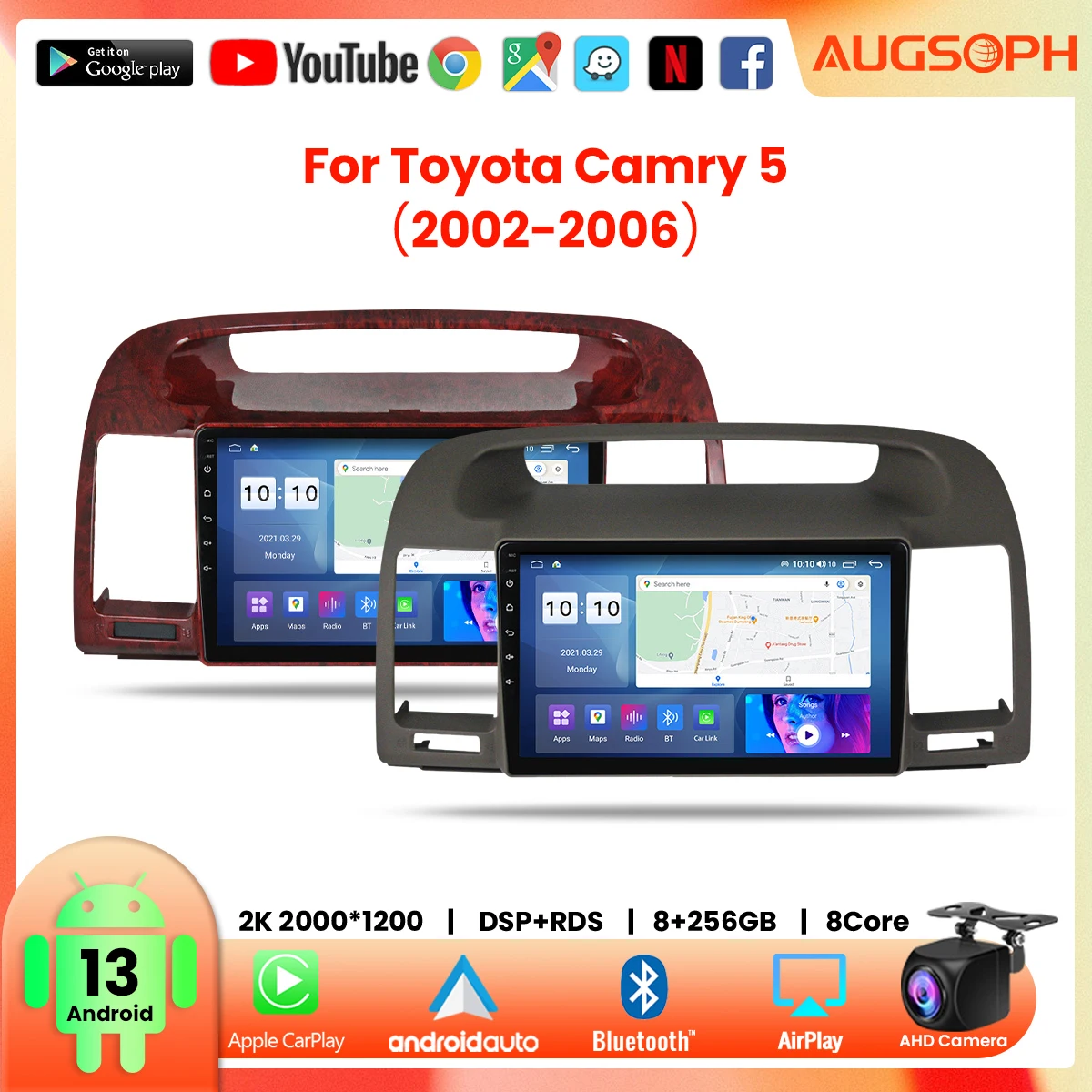 Автомобильный радиоприемник Android 13 для Toyota Camry 5 2002-2006, 9-дюймовый мультимедийный плеер с 4G WiFi Carplay и 2Din GPS
