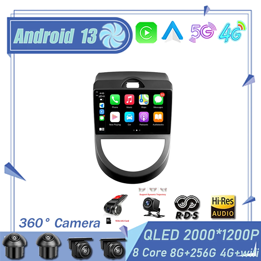 Автомобильный радиоприемник Android 13, мультимедийная навигация Carplay Автомобильный видео плеер BT без DVD для Kia Soul AM 2007 - 2011