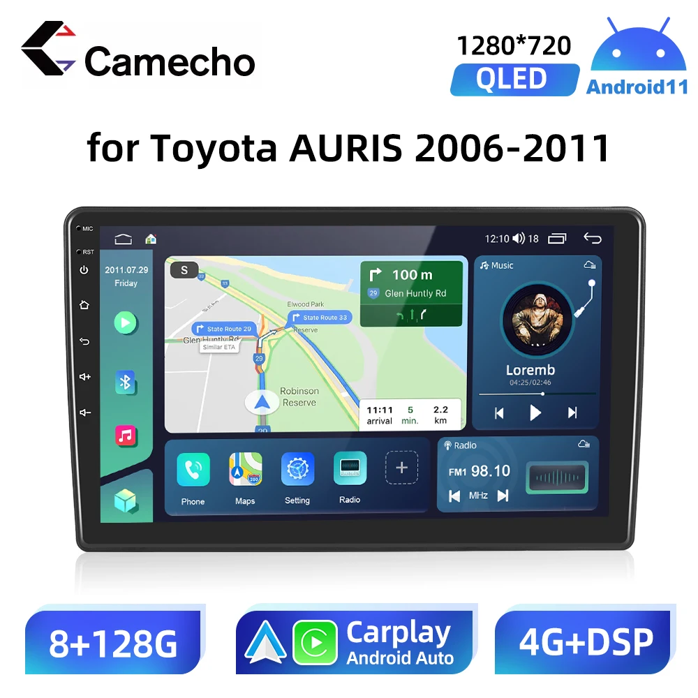 Автомобильный радиоприемник Camecho на Android 11, стерео для Toyota AURIS E150 2006-2011, автомобильный 2 Din мультимедийный экран Carplay Audio
