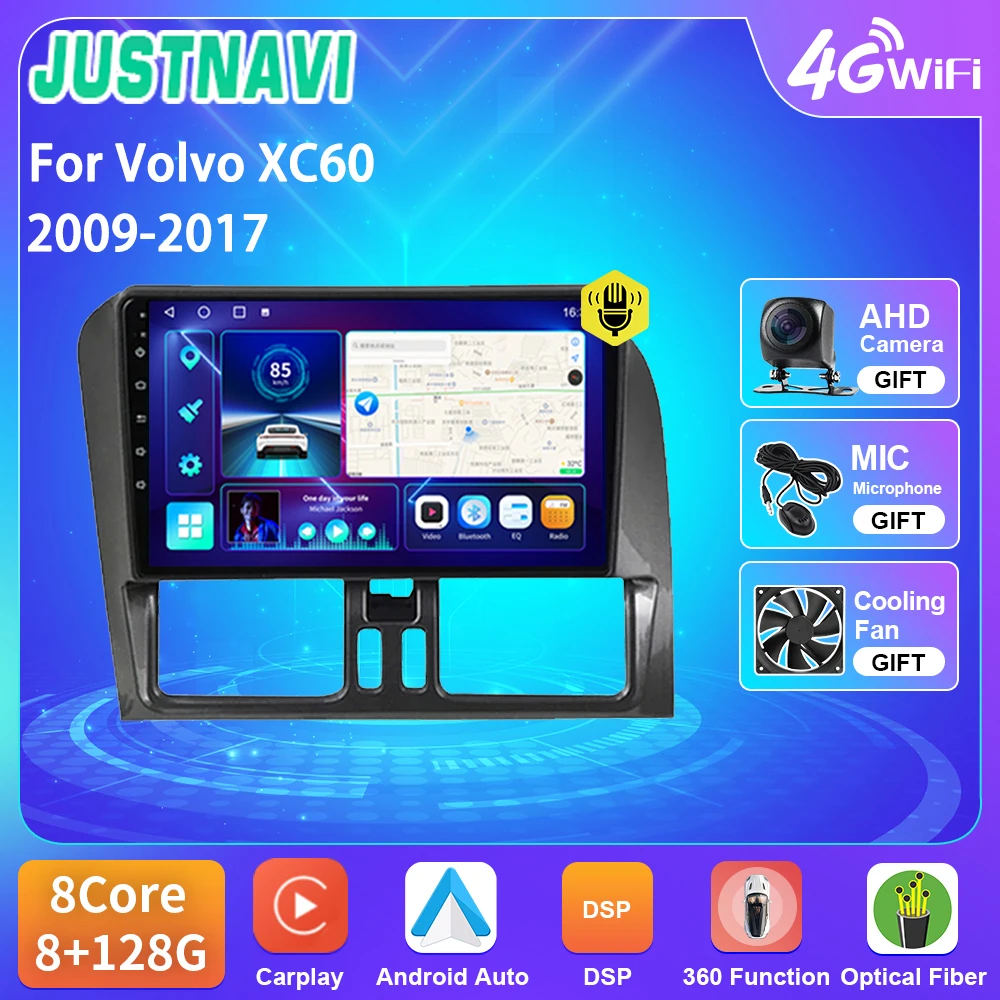 Автомобильный радиоприемник JUSTNAVI для Volvo XC60 2009-2013, GPS-навигация, Carplay, Android 10, Автомобильный плеер, Android 10, 4G, Wi-Fi, без DVD, 2 Din
