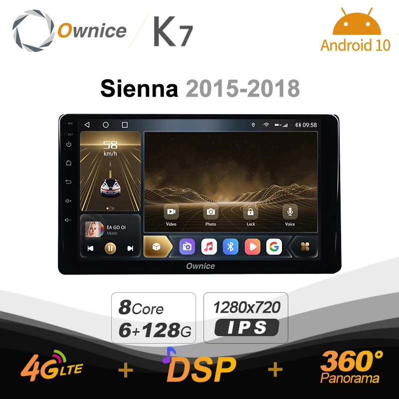 Автомобильный радиоприемник Ownice K7 6G + 128G для Toyota Sienna 2015 - 2018 android 10,0 BT 5,0 поддержка интерьера атмосферная лампа 360 4G LTE