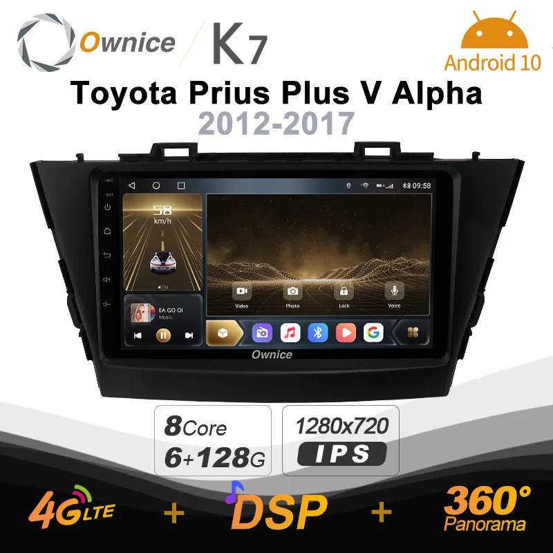 Автомобильный радиоприемник Ownice K7 6G + 128G Ownice Android 10,0 для Toyota Prius Plus V Alpha 2012 - 2017 GPS 2din 4G LTE Авторадио 360 без DVD