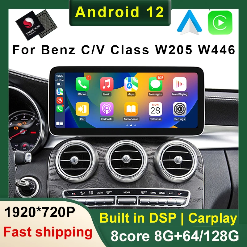 Автомобильный радиоприемник Qualcomm 12,3 дюймов Android 12 8 ядер 8 + 128G для Benz C-Class W204 W205 GLC X253 V класс W63 мультимедийный стерео DSP