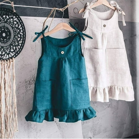 Summer Lovely Infant Baby Girls Dress Solid Button Sleeveless Belt Mini A-Line Sundress 2 Colors