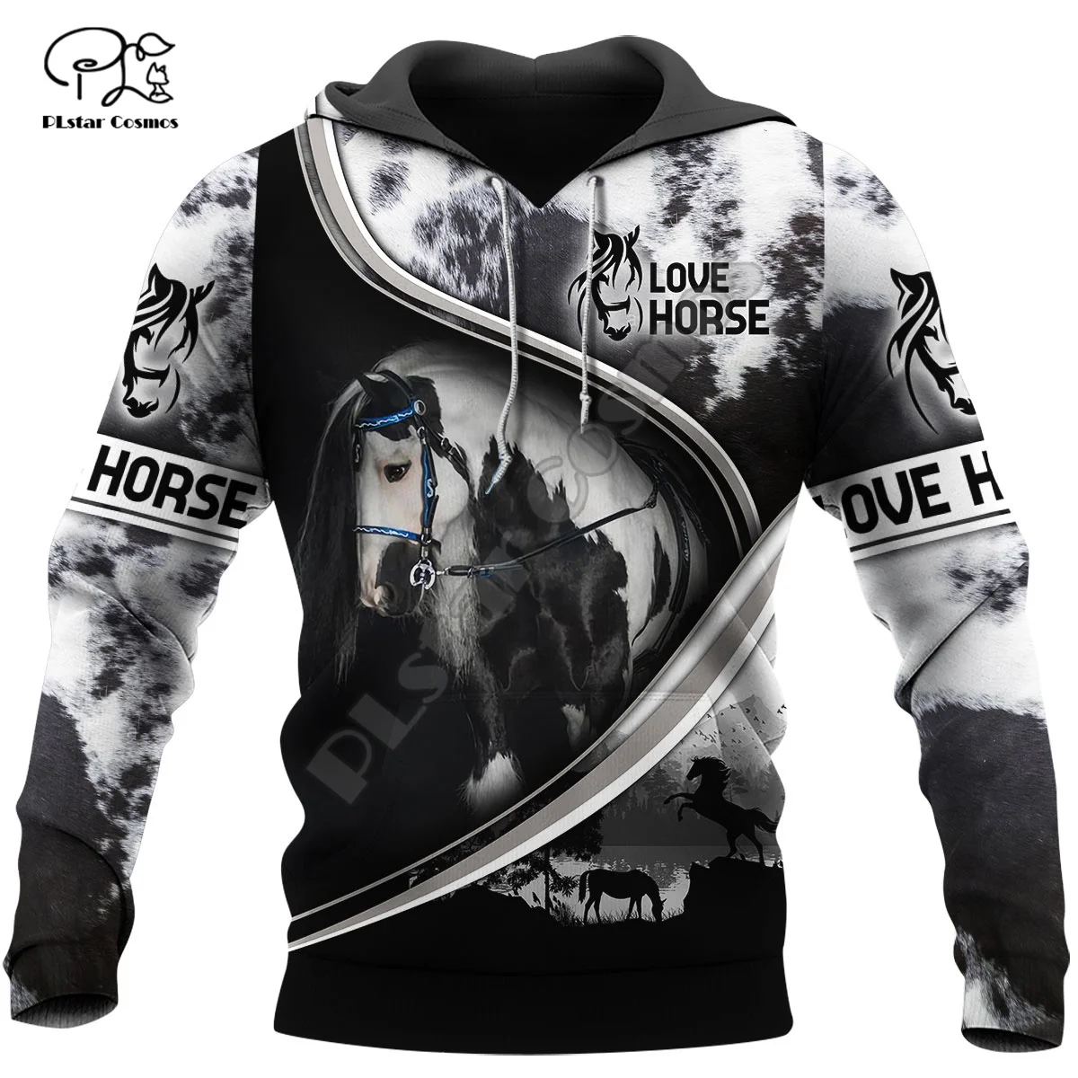 Новинка, модный тренировочный костюм PLstar Cosmos с забавными животными, любящей лошадь, красочный костюм в стиле Харадзюку, уличная одежда с при...