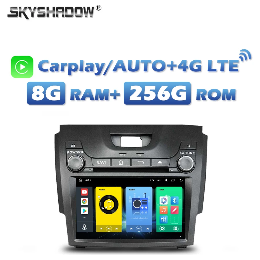Автомобильный DVD-плеер 720P с поддержкой SIM-карт, Carplay Auto, Android 13,0, 8G + 256G, Wi-Fi, Bluetooth, радио, GPS, для Шевроле Колорадо S10, Isuzu d-max, MU-X