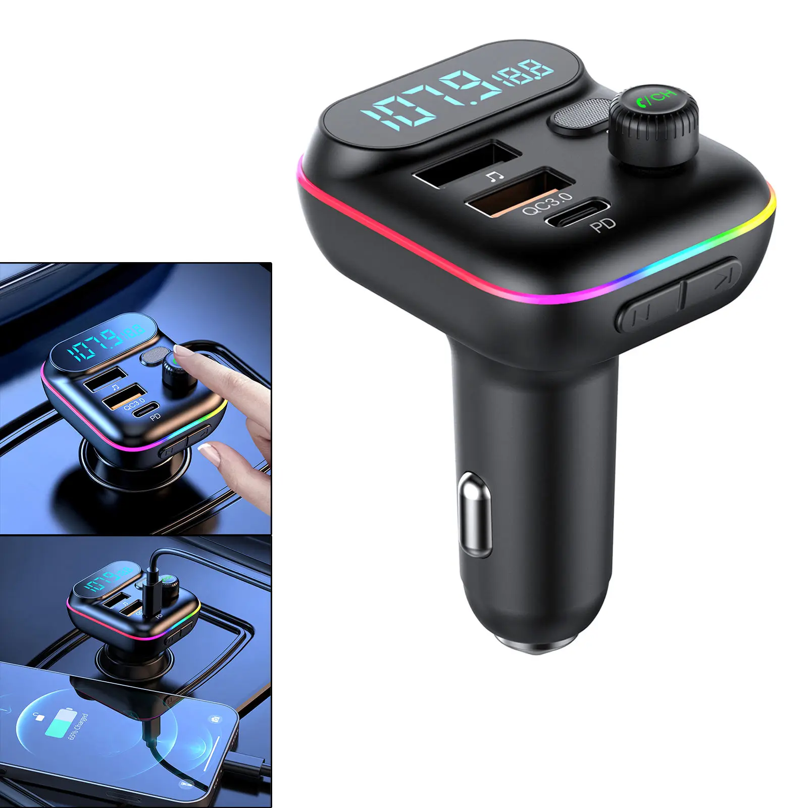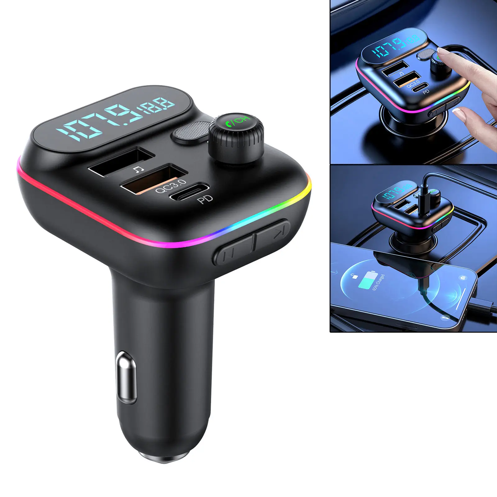 Автомобильный FM-передатчик USB QC3.0 Тип C PD Быстрая зарядка аудио адаптер Громкая связь