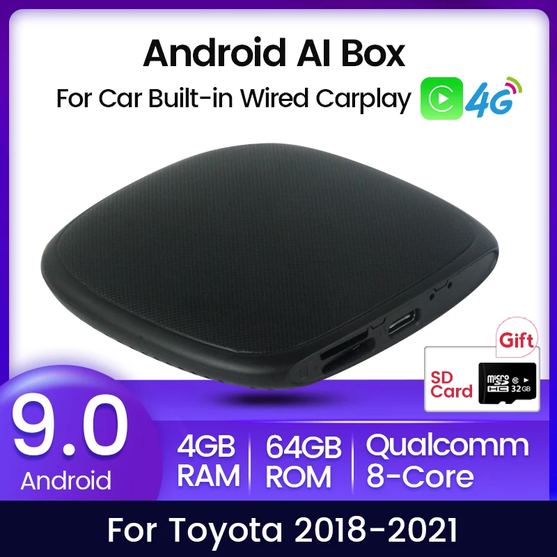 Автомобильный GPS-навигатор Qualcomm Mini Android 9 4 + 64G Ai Box для Toyota 2018-2021 проводной и беспроводной Carplay Plug and Play