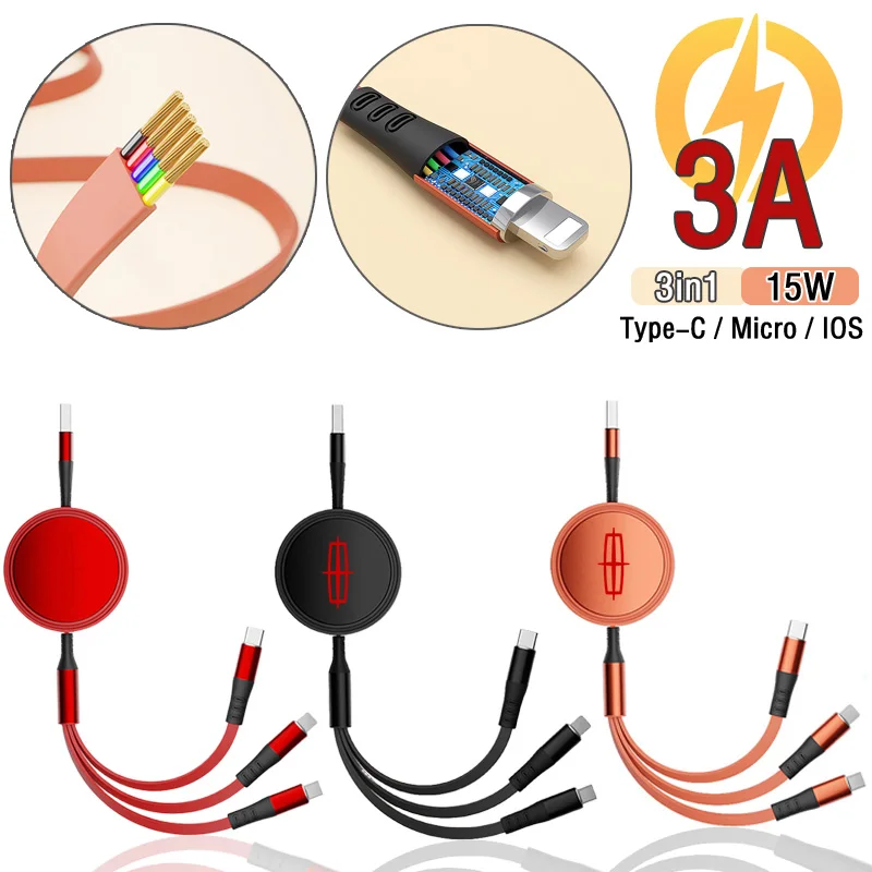 Автомобильный USB-кабель 3 в 1 для быстрой зарядки и передачи данных Xiaomi Huawei для Lincoln Navigator Town Continental Mkx Mkz Aviater Nautilus Mkc