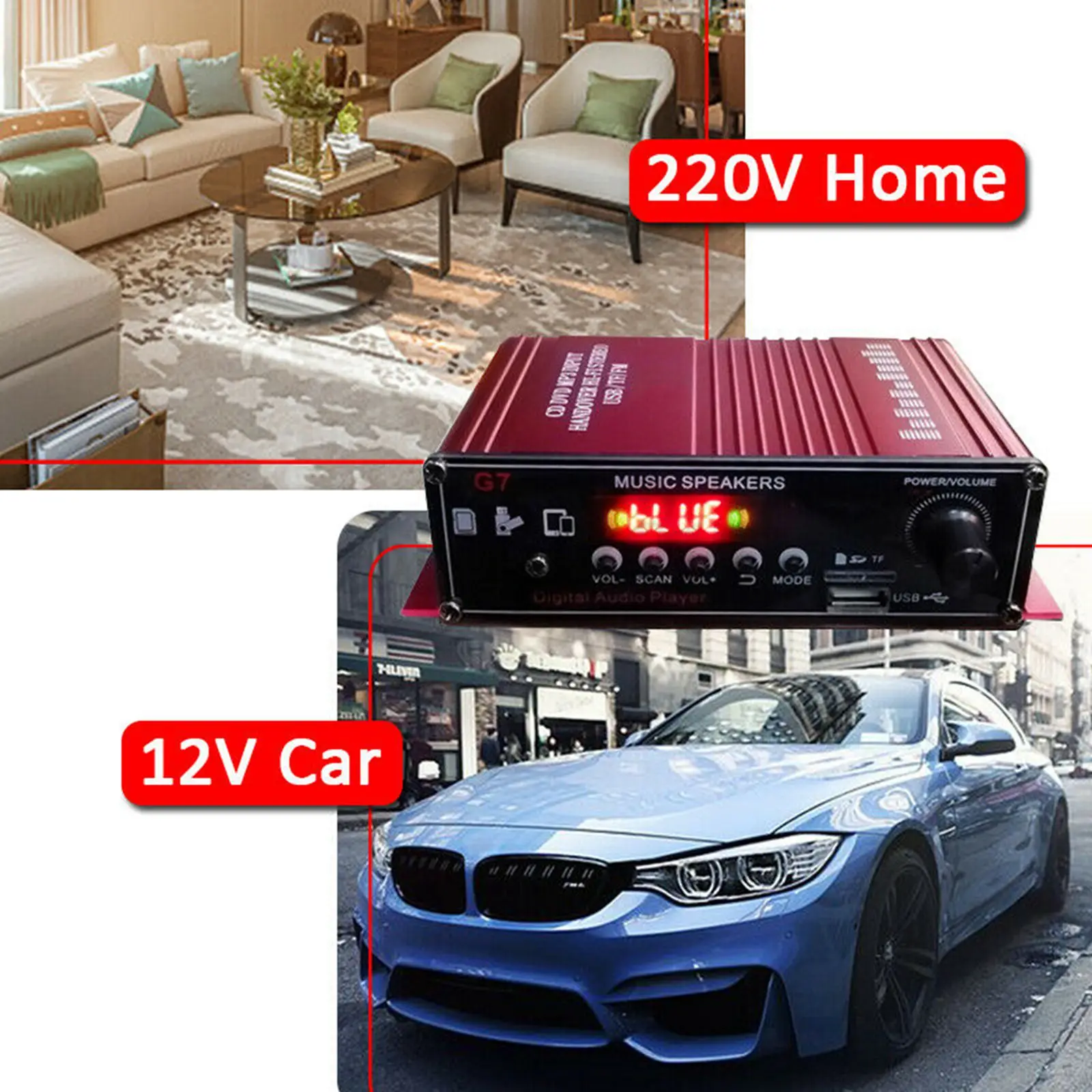 Автомобильный bluetooth-усилитель, 400 Вт, FM, USB, SD, с дистанционным управлением, 2-канальный, Hi-Fi, стерео, Amp, G7