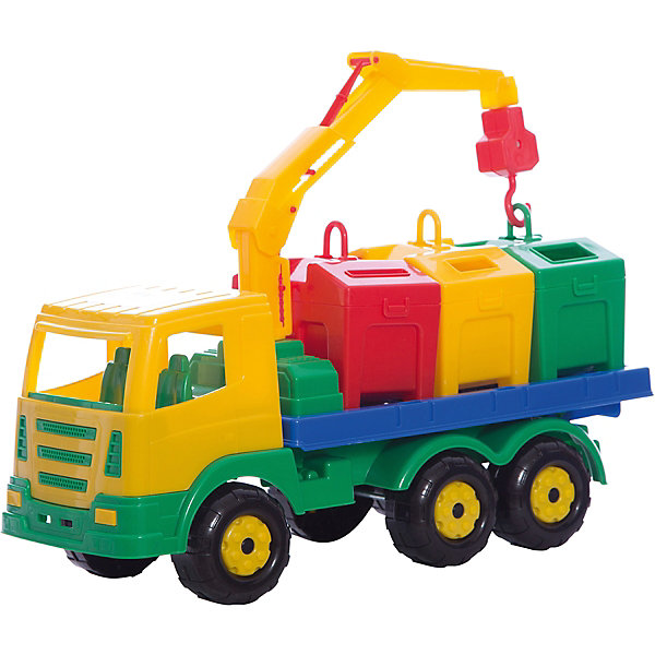 Автомобиль-контейнеровоз привлечет внимание любого ребенка не только своим ярким, легко разбирающимся корпусом, но и подвижному подъемному устройству.