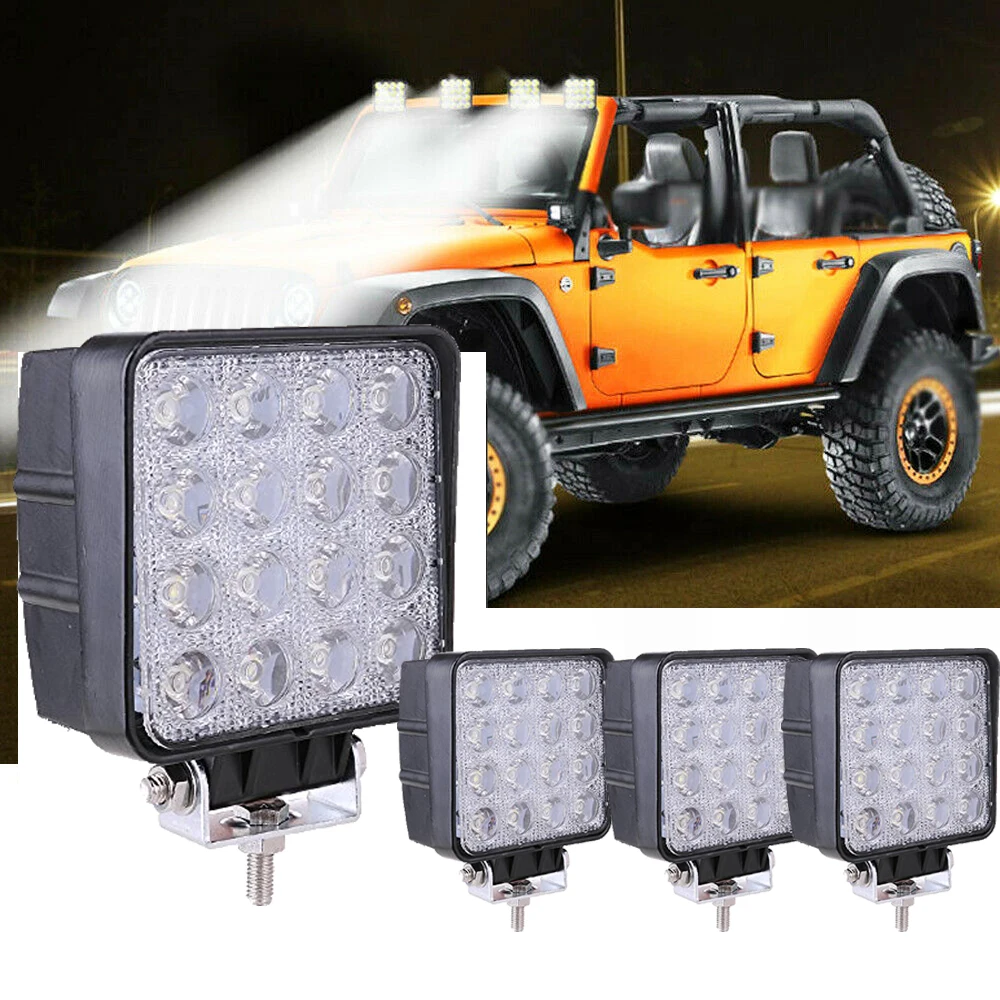 Автомобисветильник светильник фары, 4 шт., прожекторы 4 дюйма 48 Вт, стандарсветодиодный ные лампы 12 В 24 В для квадроциклов, кроссоверов, мотоц...