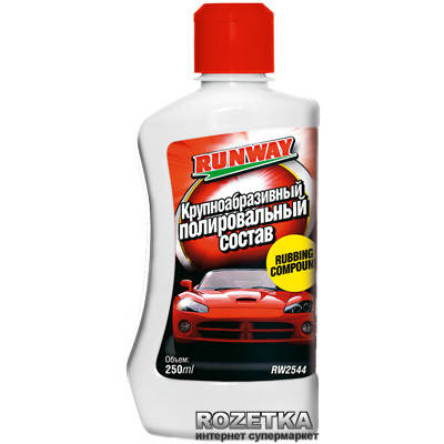 Крупноабразивный полировальный состав Runway RW2544. Профессиональный состав, обладающий ярковыраженными абразивными свойствами, предназначенный для удаления глубоких царапин, снятия сильно окисленного или помутневшего верхнего слоя краски.Используется для удаления "опыла" и подтеков краски при кузовном ремонте, для шлифовки поверхностей и удаления глянца при частичной покраске панелей "в цвет". Подходит для всех типов лакокрасочных покрытий. Может использоваться для ручной и машинной полировки. Если покрытие имеет неглубокие царапины, используйте мелкоабразивный полировальный состав Runway.Способ примененияПеред использованием состава вымойте и высушите автомобиль (для достижения наилучших результатов используйте шампунь RUNWAY). Хорошо встряхните флакон перед использованием. Нанесите небольшое количество состава на чистую, сухую тряпку и обработайте поверхность кузова круговыми поступательными движениями, постепенно уменьшая давление на поверхность. После обработки ополосните поверхность водой и вытрите насухо. Хранить в теплом месте, не подвергать замораживанию!Объём: 250 мл