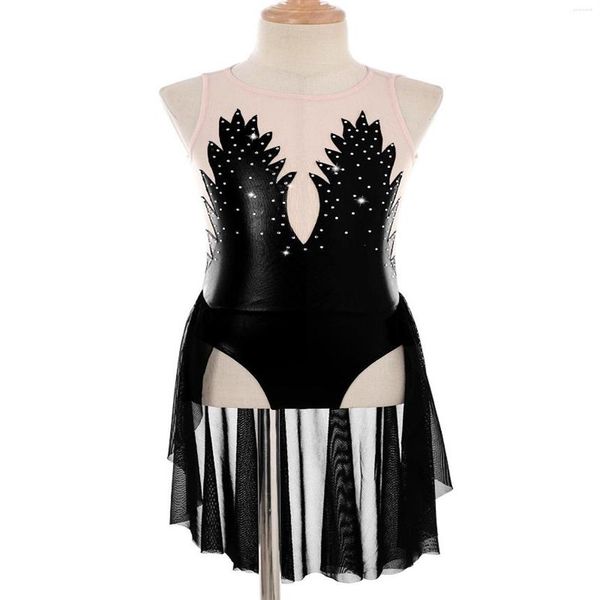 stage wear kids girls ballet dress shiny rhinestone sleeveless ballroom competition gymnastics leotard bodysuit lyrical dance cost260m, Black;red