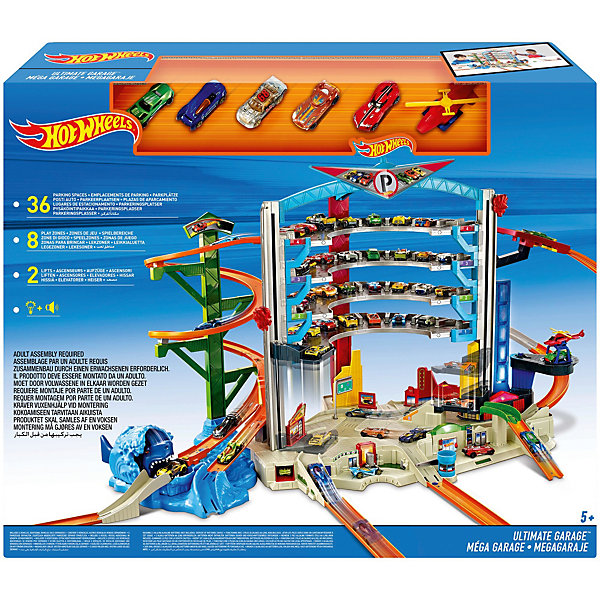 Большая трасса-гараж имеет многоуровневую парковку на 36 мест, а на верхние этажи можно попасть на лифтах, которые расположены с обеих сторон и управляются вручную. Съезжать с парковки можно по спиральному спуску, но внизу надо быть осторожным, можно попасть прямо в пасть акулы. С другой стороны расположен гоночный спуск, на котором можно узнать какая машинка быстрее. Гараж и заправочная станция оснащены звуковыми и световыми эффектами. Внизу на площадке также расположены пожарная станция с сиреной и различные здания. Спасательный вертолёт с лебёдкой издаёт звуки, когда взлетает и покидает площадку. Набор изготовлен из качественных и безопасных материалов.