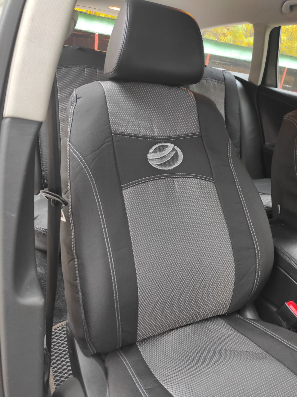 Данная серия авточехлов модельного типа. Это значит, что чехлы изготавливаются под конкретную модель авто с учетом всех деталей салона (отверстия для подголовников, ручек, карманов и т.д.). Как следствие, чехлы идеально повторяют форму сидений и легко устанавливаются. В комплекте имеются необходимые резинки и крючки для правильного монтажа. Логотип марки на лицевой части чехла нанесен методом вышивки.В центральной части чехла используется фактурная ткань с мелким рисунком (точечки, полоски, ромбики и т.д.). Задняя и боковые части изготовленый из однотонного материала.