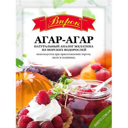 Вес: 10гАгар-Агар Впрок 10г – нейтральное желе, которое получают из красных и бурых водорослей. И самое интересное, в нашей стране он используется в основном в кондитерских изделиях – для изготовления мармелада, зефира, желе, мороженого.