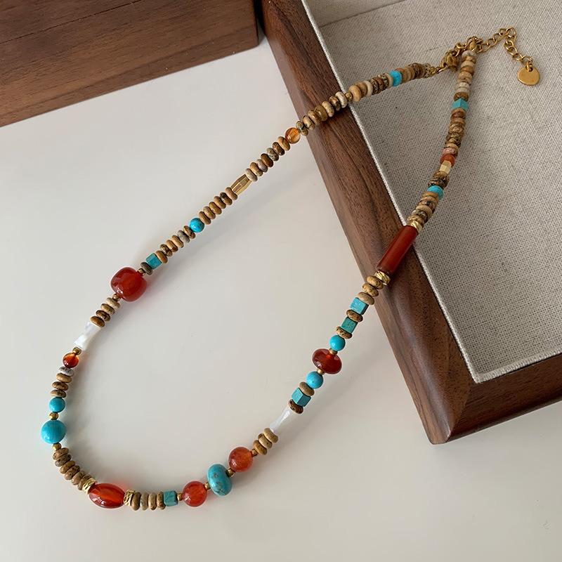 Агатовая ключичная цепочка для женщин, новая китайская нишевая бисерная цепочка на шею, аксессуары, гочао, ретро, высококачественное бирюзовое ожерелье
