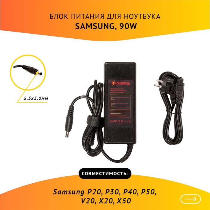 Адаптер питания ноутбука сетевой ZeepDeep для Samsung, 90Вт, 19V, 4.74A, черный (ZD111_AD-9019N)