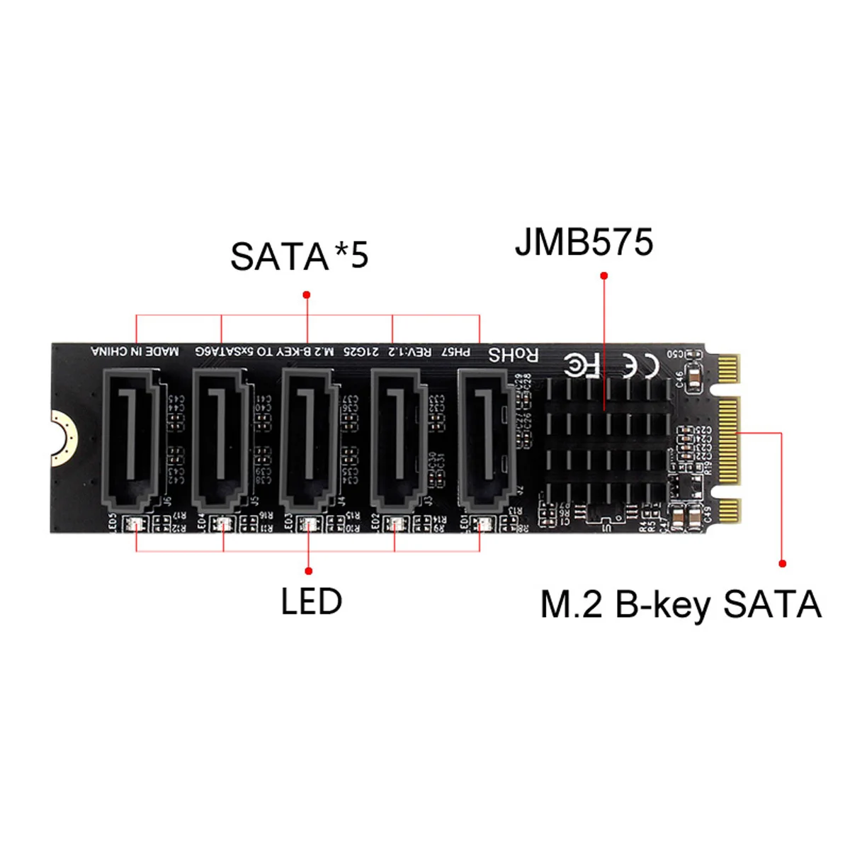 Адаптер CYDZ5 Port s JMB575 2280 NGFF Key B + M на SATA 3,0 6 Гбит/с, порт преобразователя