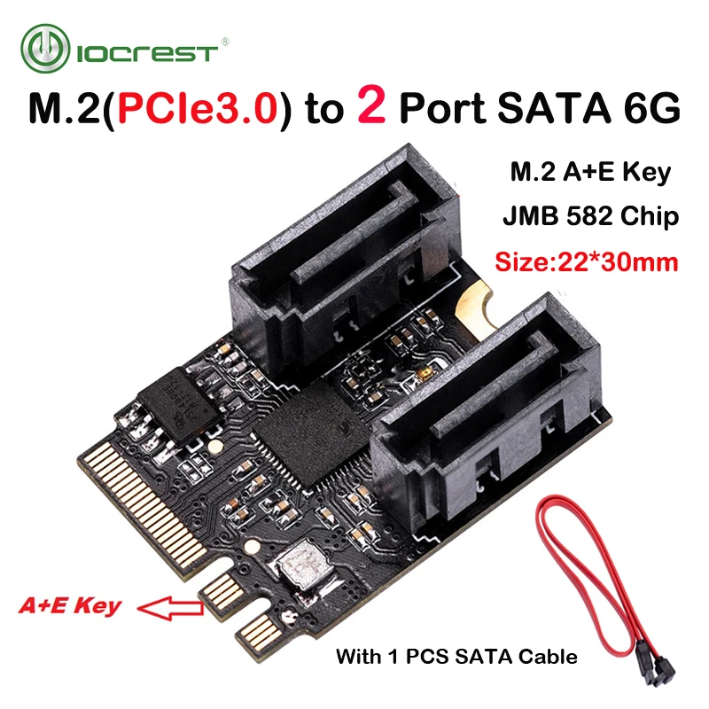 Адаптер IOCREST M.2 Ngff в Sata 3, карта A-Key и E-Key, 2 порта SATA 6, флэш-драйвер, размер 2230 мм, черный