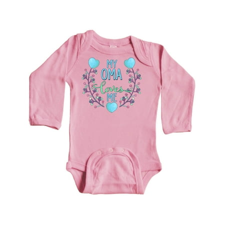 Inktastic My Oma Loves Me with Flowers and Hearts Gift Baby Boy or Baby Girl Long Sleeve Bodysuit
