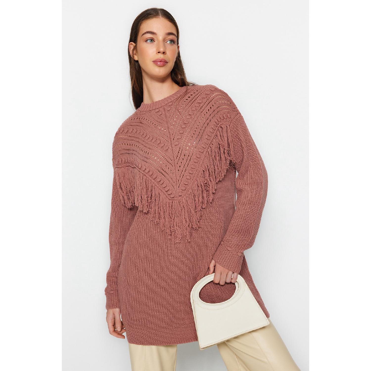 Ажурный вязаный свитер «Пыльная роза» с кисточками Tiko Thessaloniki Tctaw24ak00150 S