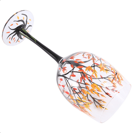 2Pcs HOT-Autumn Tree Wine Glass - Fall Colors - Leaves of Red Yellow Orange - Hand Painted - Fall Leaf