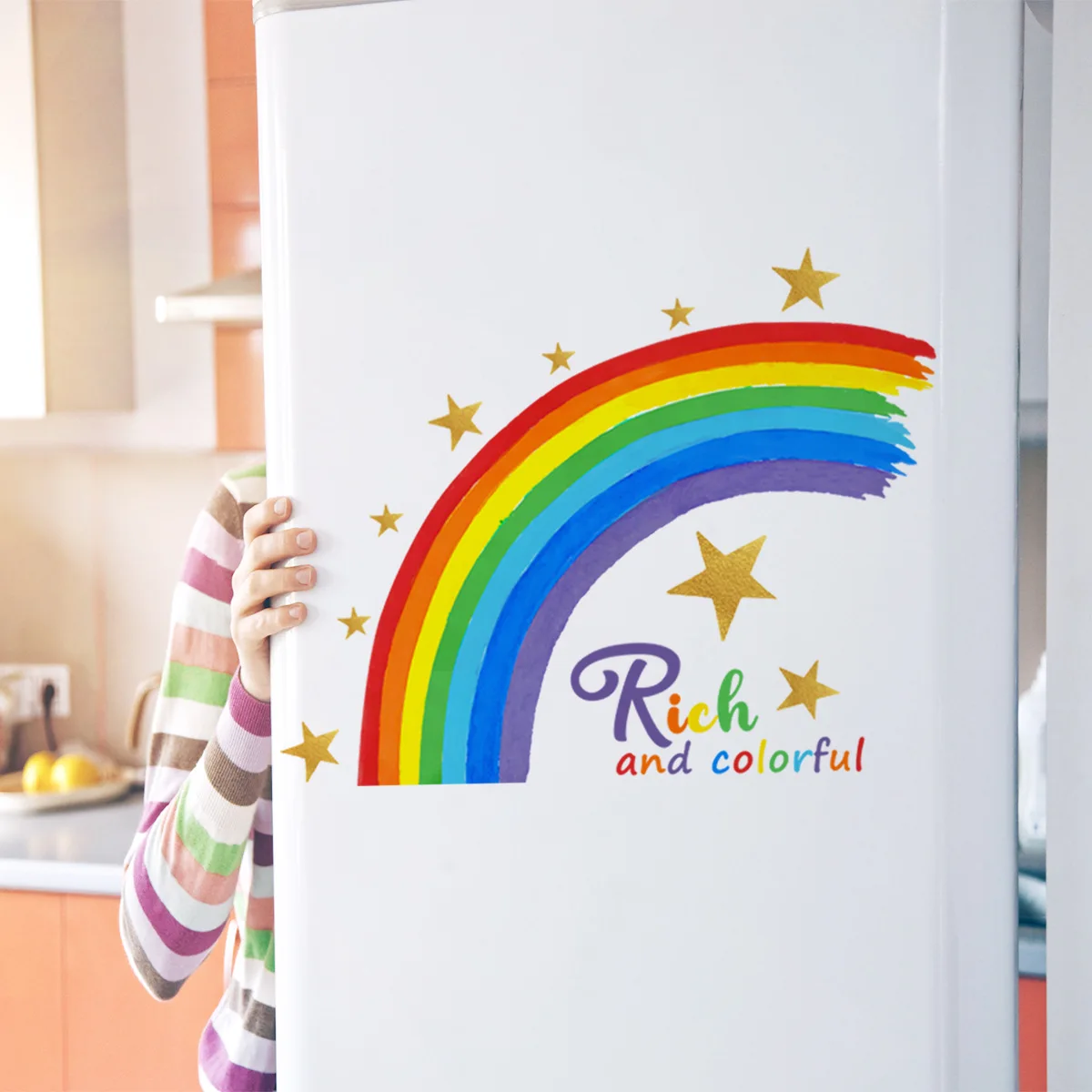 Акварельные радужные настенные наклейки для гостиной, спальни, настенные наклейки для детской комнаты, Детские фрески из ПВХ