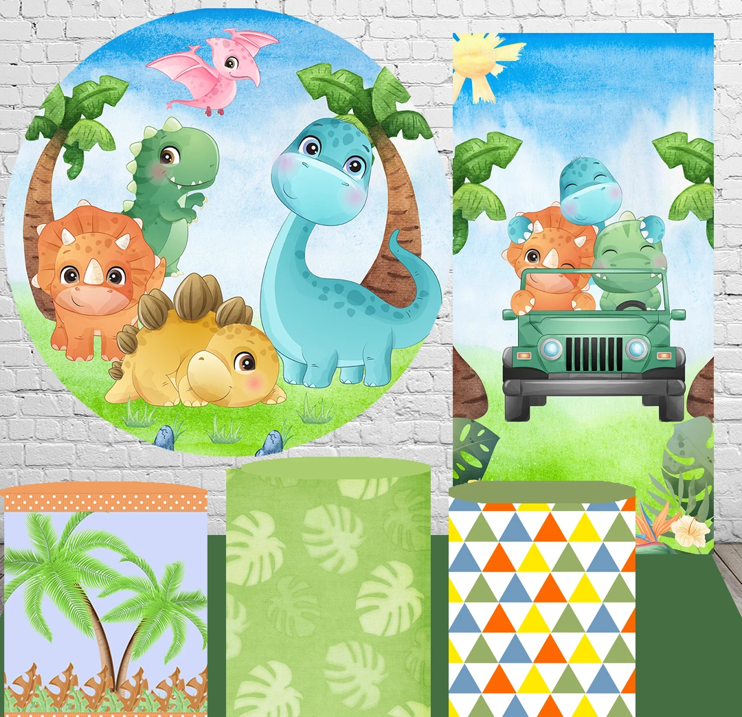 Акварельный мультяшный динозавр Юрского периода Круглый круглый фон для детского дня рождения Декор для детской вечеринки скатерти