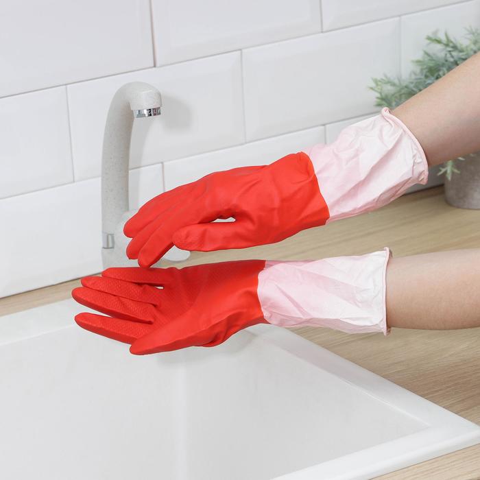 Перчатки латексные хозяйственные Komfi, сверхпрочные, размер L, цвет красный, белый