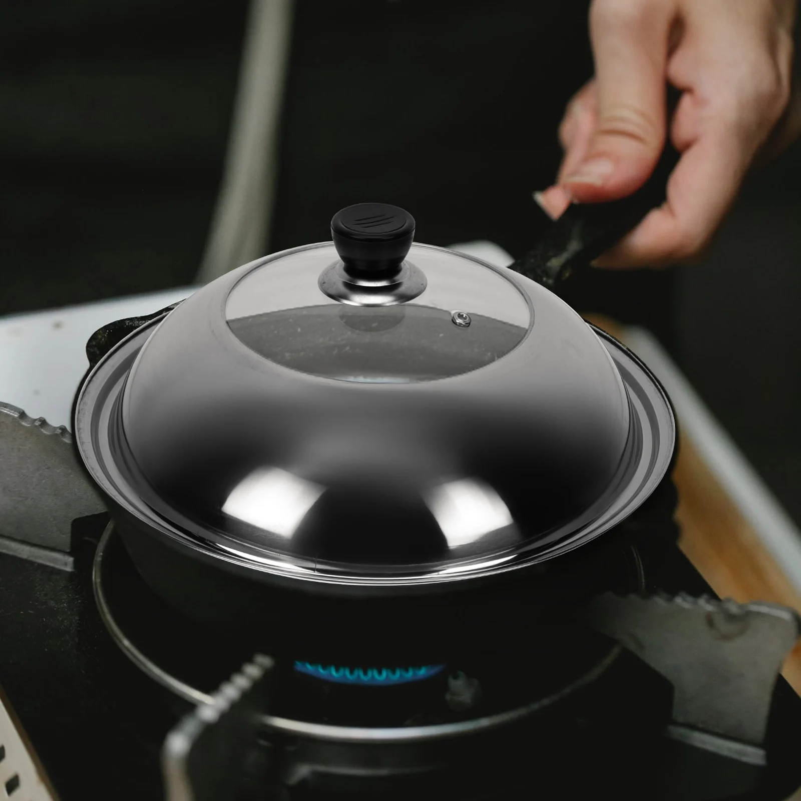 1pc Anti Spill Pot Lid Stainless Steel Easy Clean Cooking Pans Covers Safe Vent Design Round Shape Practical Kitchen