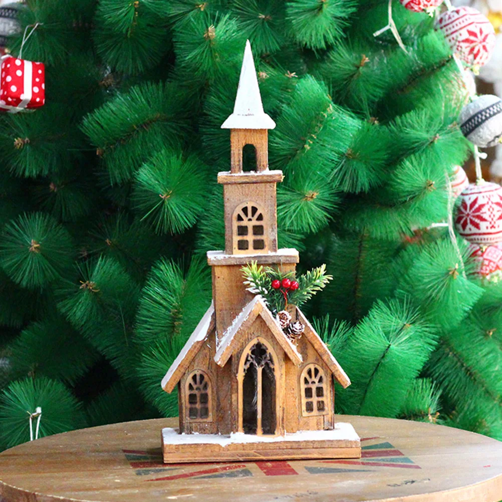 1pc LED Glowing Snow House Wooden Christmas Decor Luminous Party Ornament Desktop Home Decoration Gift for Family Friends Shop