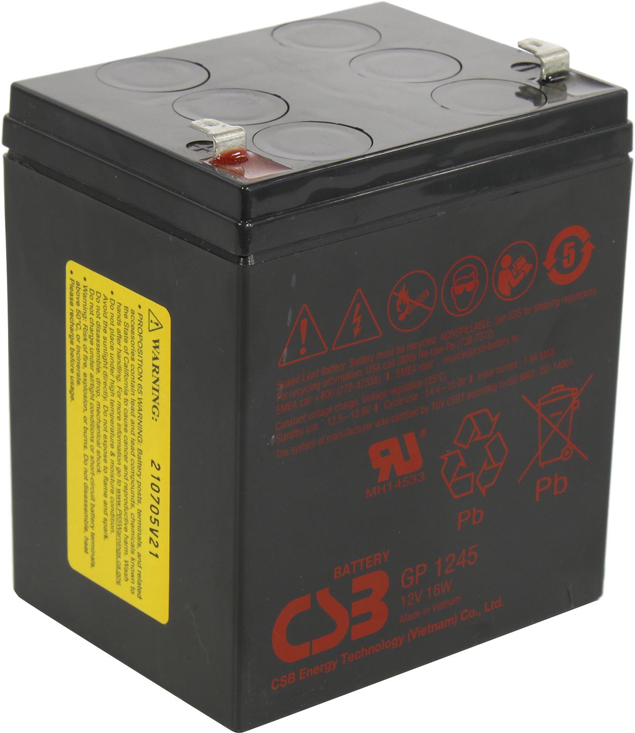 Аккумуляторная батарея для ИБП CSB GP 1245 (16 W), 12V, 4.5Ah, Черный, 1245 (16 W)